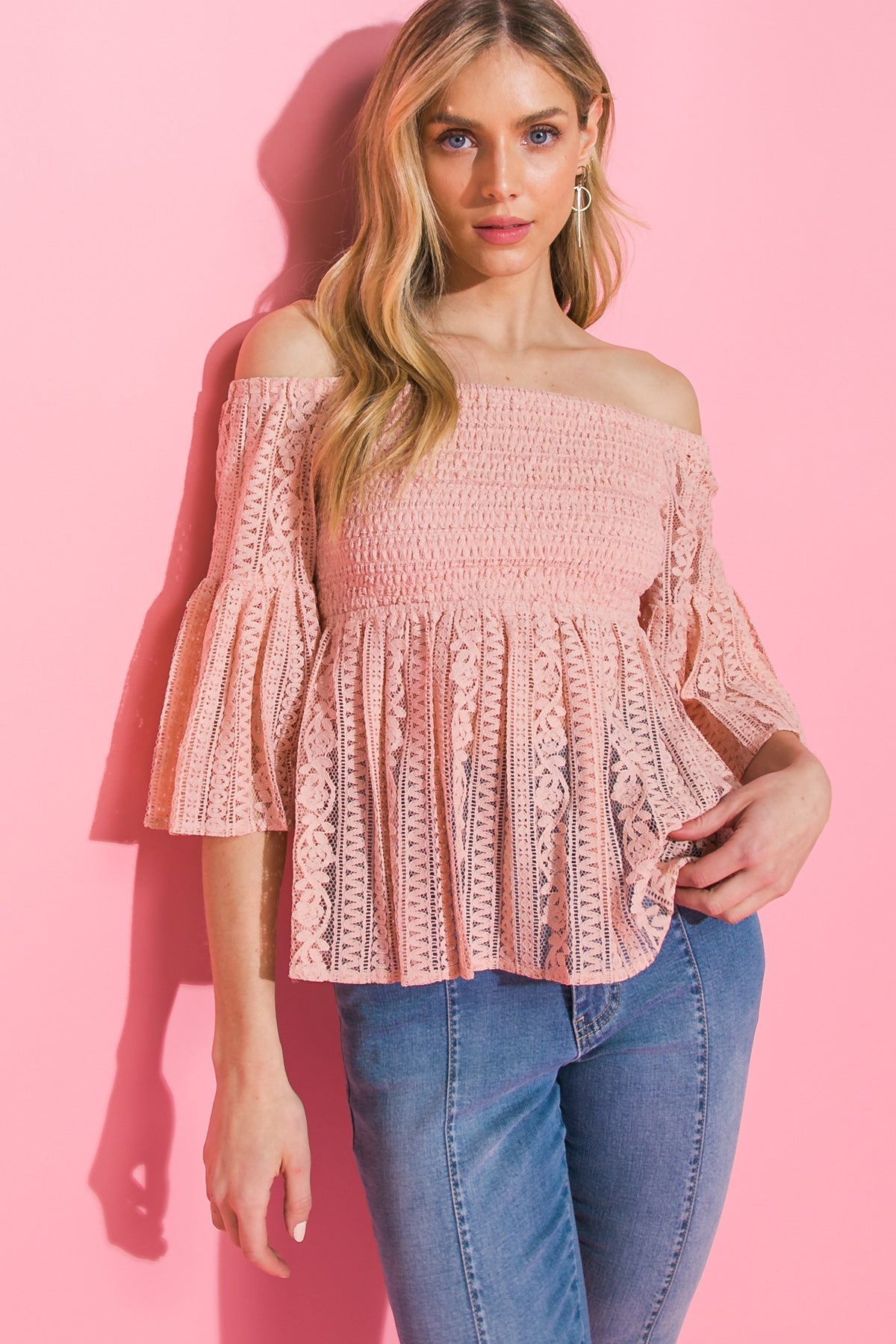 Coastal City's lace top is perfect for any special occasion. The beautiful off shoulder neckline, angel sleeves, and smocked bodice with peplum add a touch of elegance and femininity to your look. Slip into this top to add a hint of romance to any outfit.