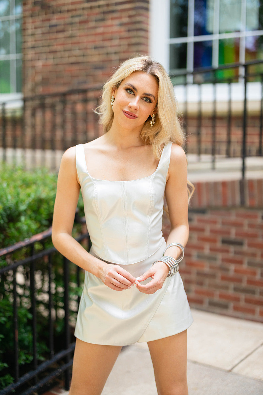 This Coco Corset Top is for the bold, daring fashionista! If you're looking to make a statement with your style, this is perfect! Crafted from vegan leather and designed with a stretchy smocked back and corset fit, you'll be turning heads and feeling fierce with every wear! She's cropped and pairs perfectly with our John Skort!