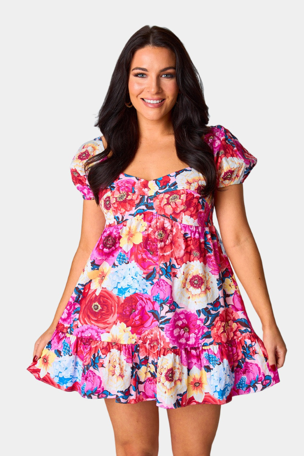 You'll be darling in the Diego dress! She's a babydoll style mini dress with elastic puff sleeves and smocking in the back. She's comfortable and easy- perfect for a baby shower or Easter! We would style this with the matching Jubilee Brianna Cannon xx BL Eleanor Headband for an effortlessly cute outfit!