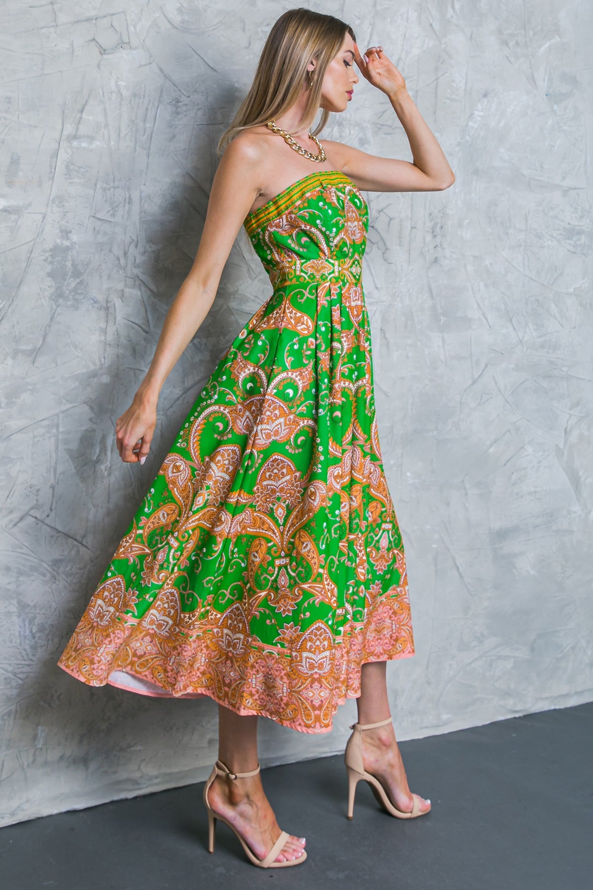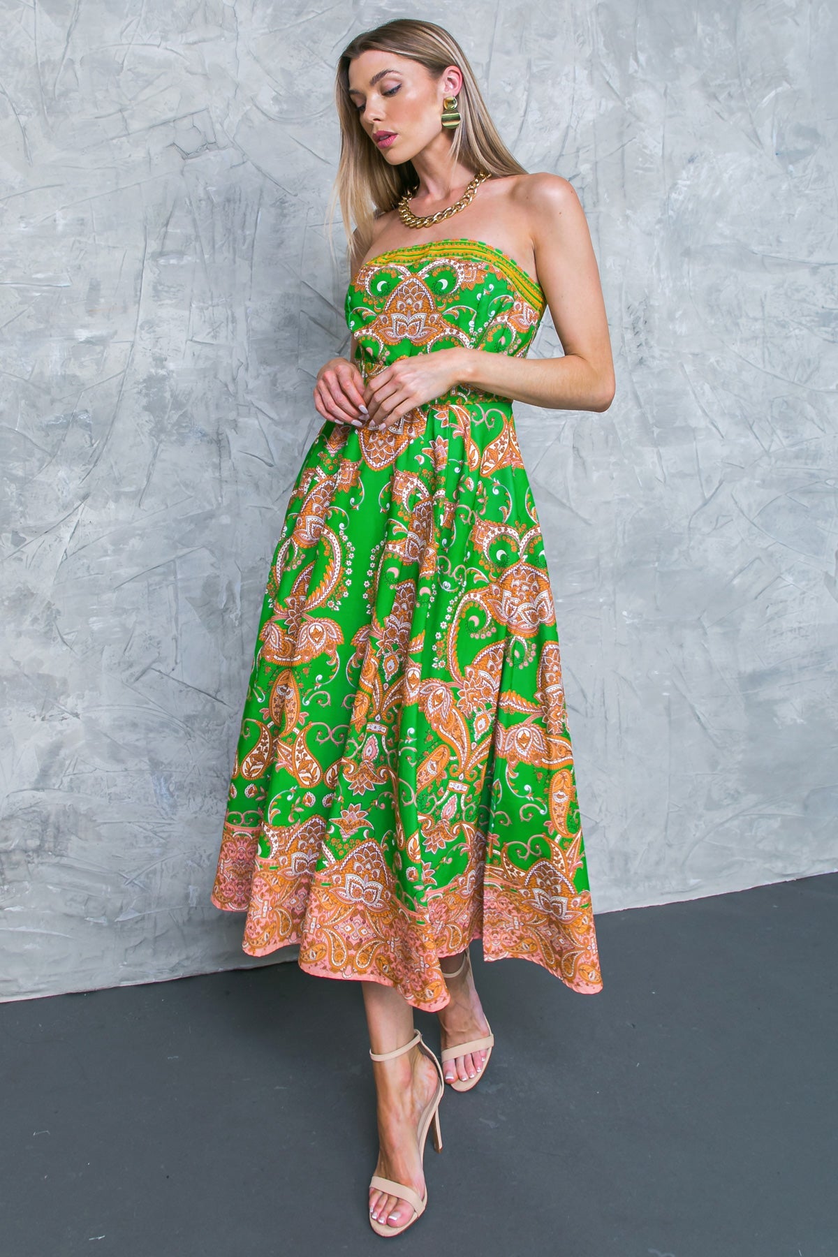 Stay on-trend with the DON'T WAIT ANYMORE WOVEN MIDI DRESS. Crafted from lightweight woven fabric, this midi dress features a strapless top, full skirt, and pockets for convenience. A back zipper closure ensures a perfect fit with every wear. Make a statement with this timeless look.