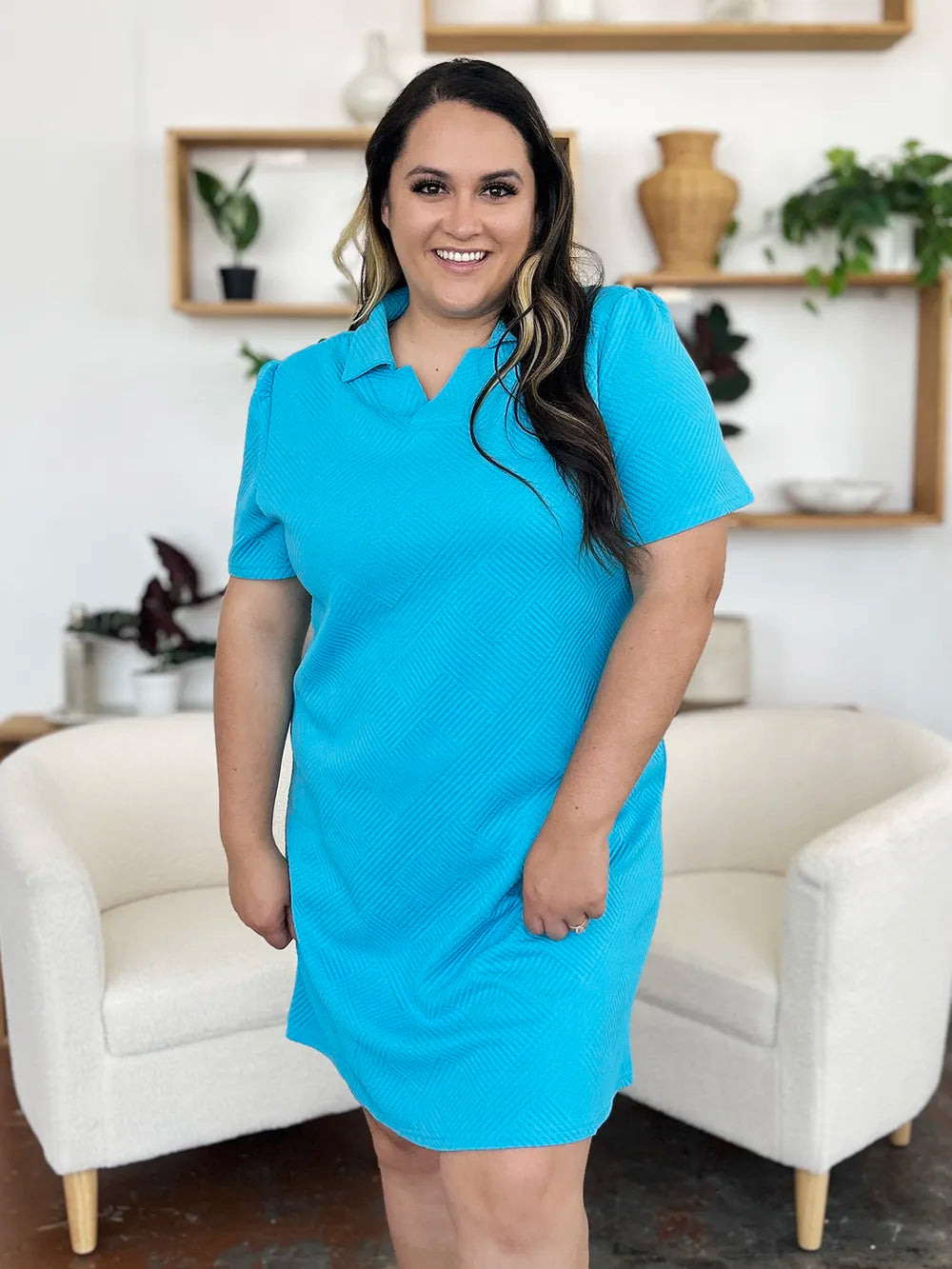 Double Take Full Size Texture Collared Neck Short Sleeve Dress