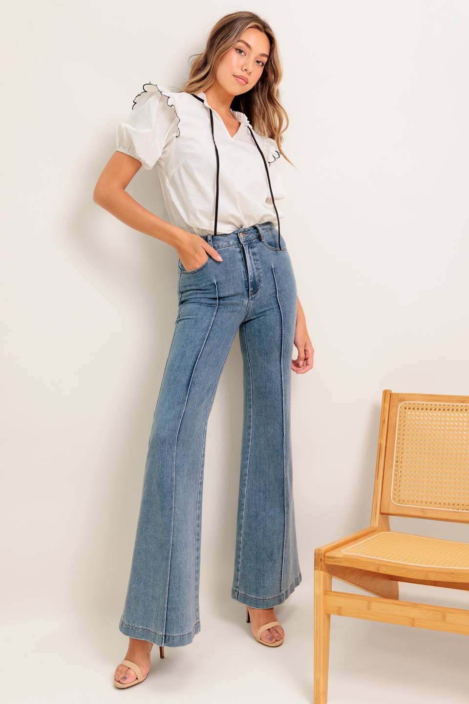 FRENCH WHISPER IVORY WOVEN TOP