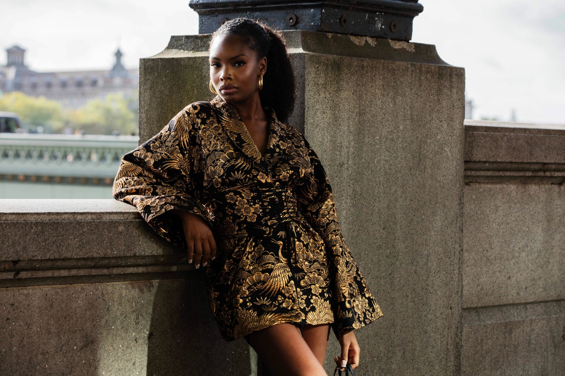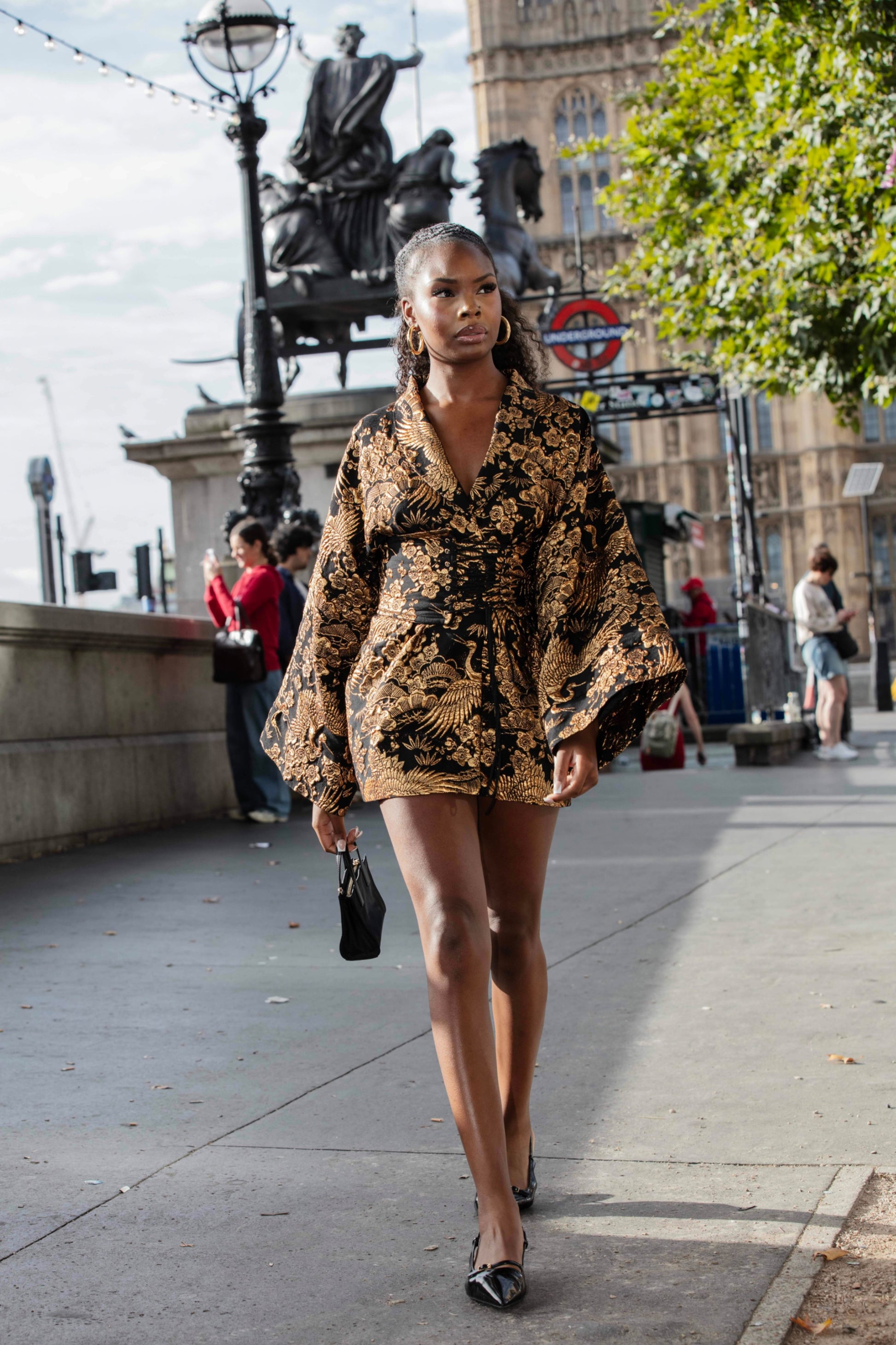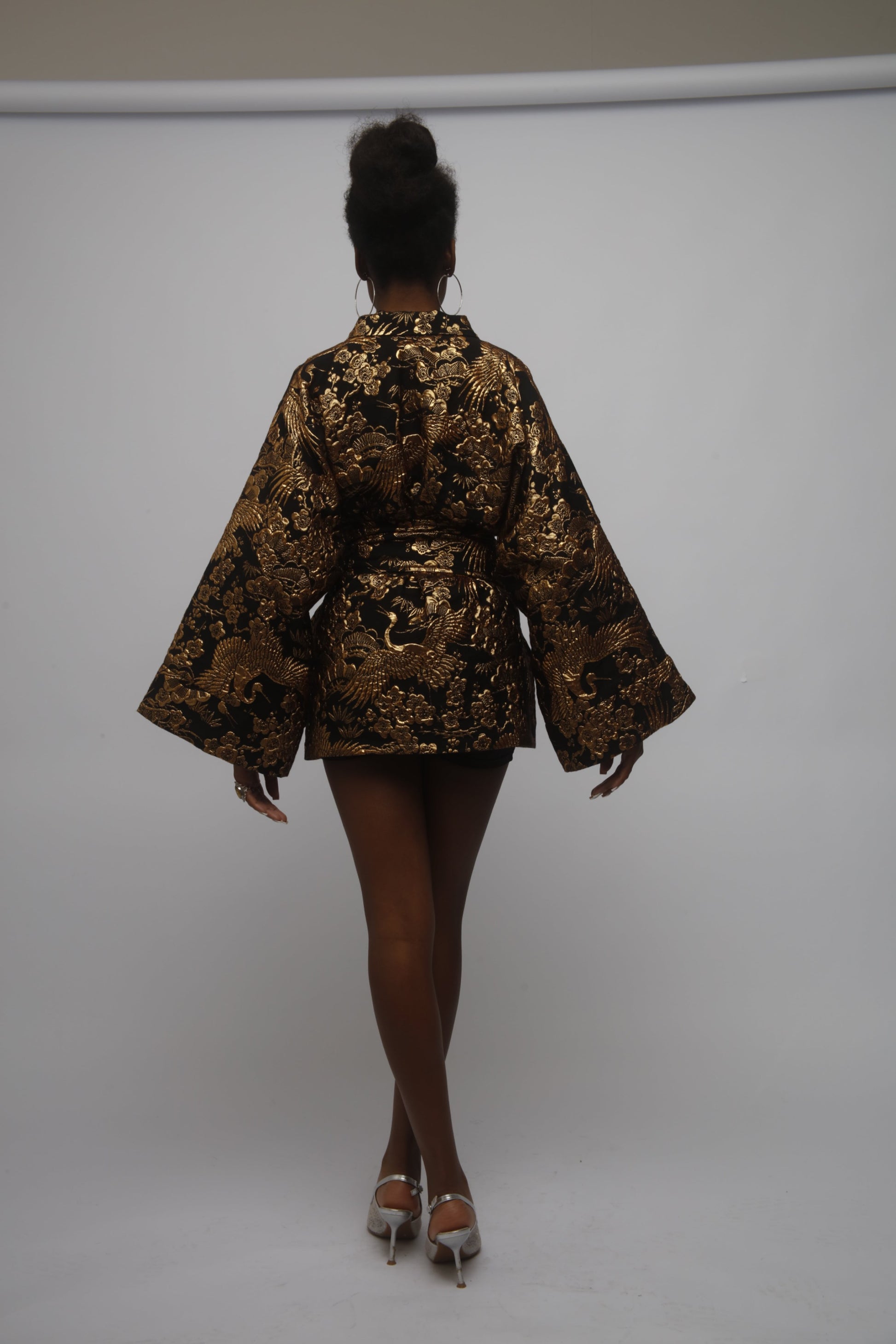 JACQUARD KIMONO WITH CORSET BELT DETAILED