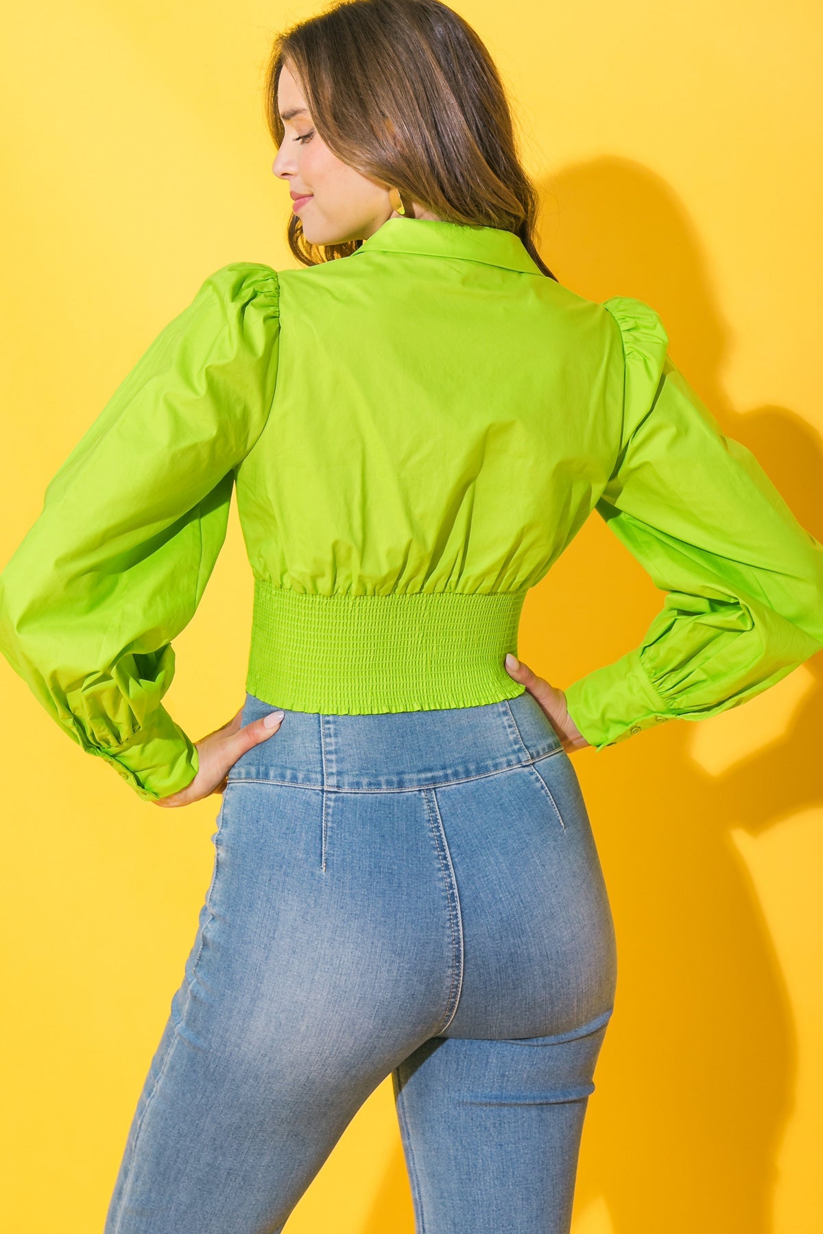 This HOW I FEEL POPLIN TOP is expertly crafted from lightweight poplin fabric and designed with modern fashion in mind. Notable features include a deep V neckline, peasant sleeve and waist yoke with hook & eye closure. The back smocked waist ensures a comfortable and secure fit, perfect for easy wear all day long.
