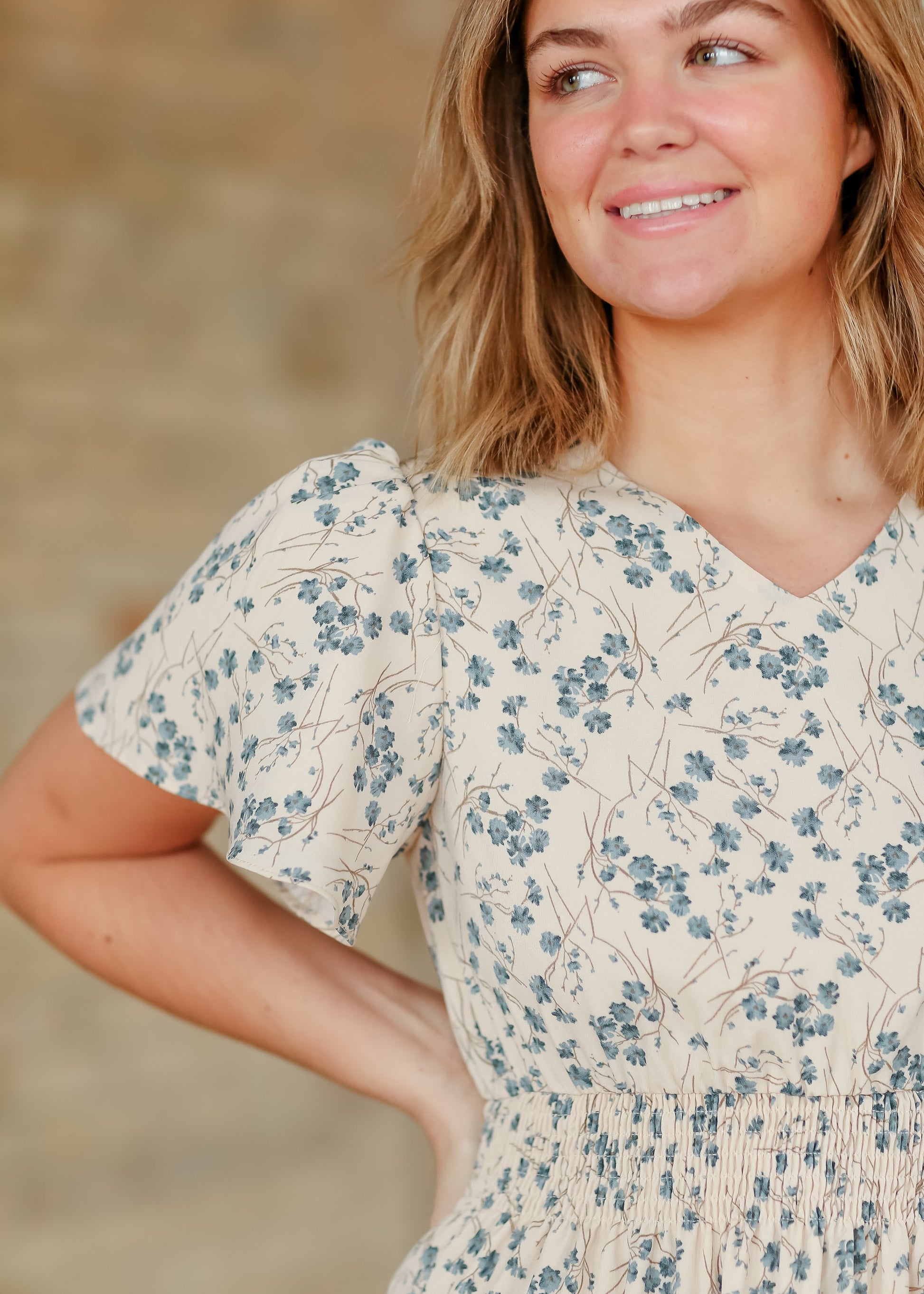 This is our FAVORITE fit of dress, it looks great on every body type! The Isabella V Neck Flutter Sleeve Floral Maxi Dress features a true modest v-neck, pretty flutter sleeves, and a flattering smocked waist. Designed in a modest maxi length and it is fully lined! Wear this feminine dress every week to church, to a wedding, or any other special event this season!
