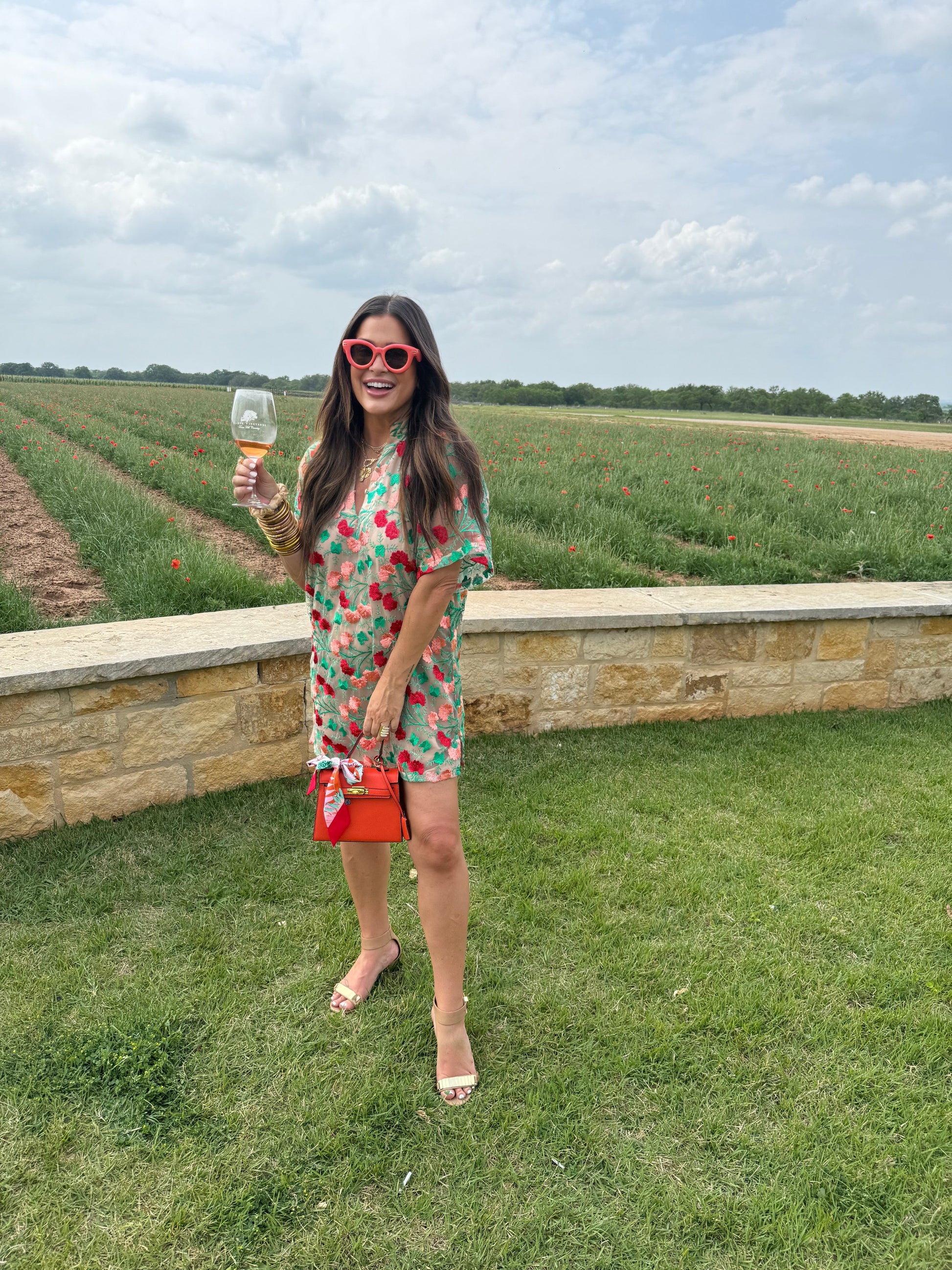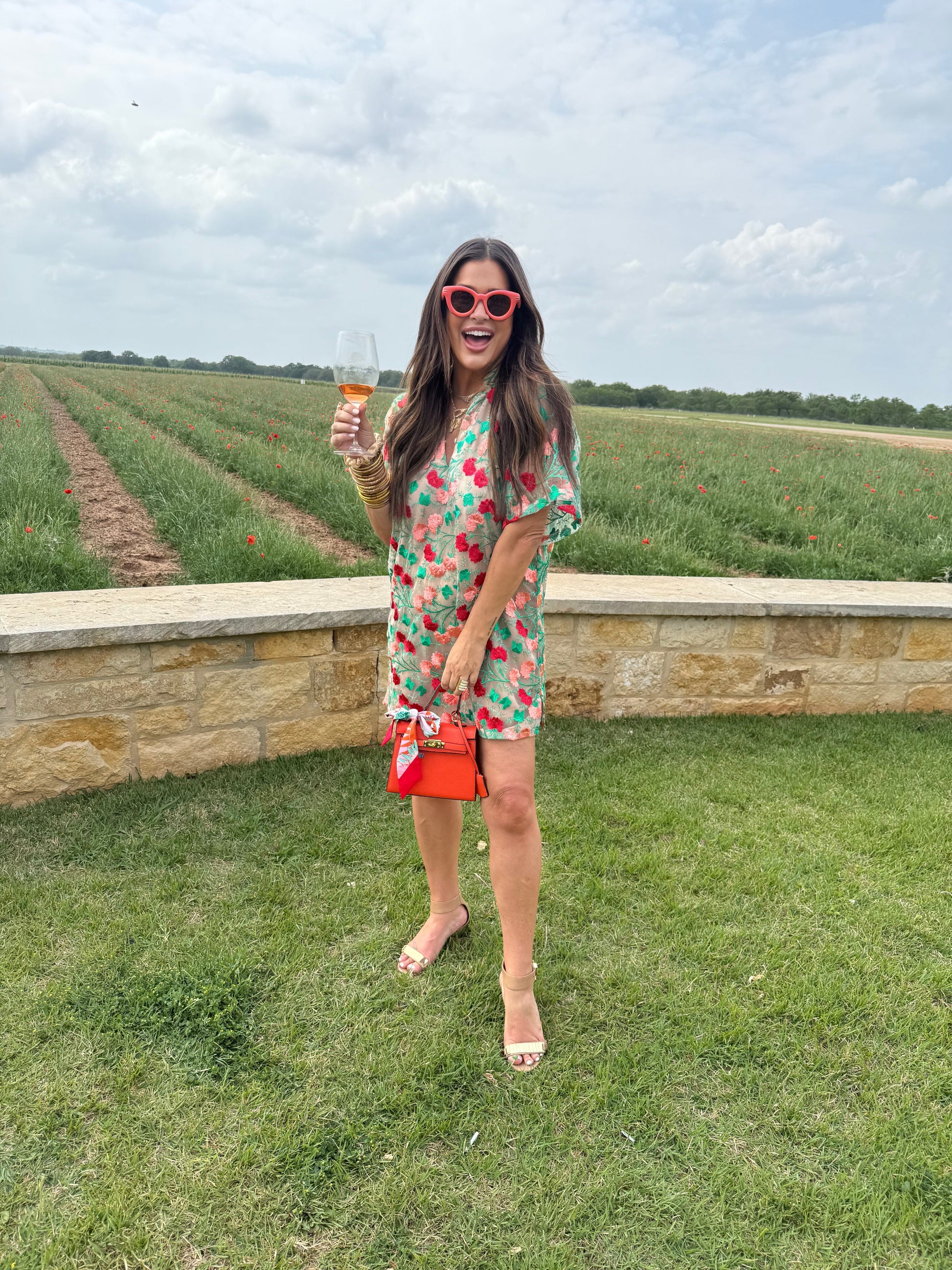 Lulu Short Sleeve Mini Caftan- Precious Coral