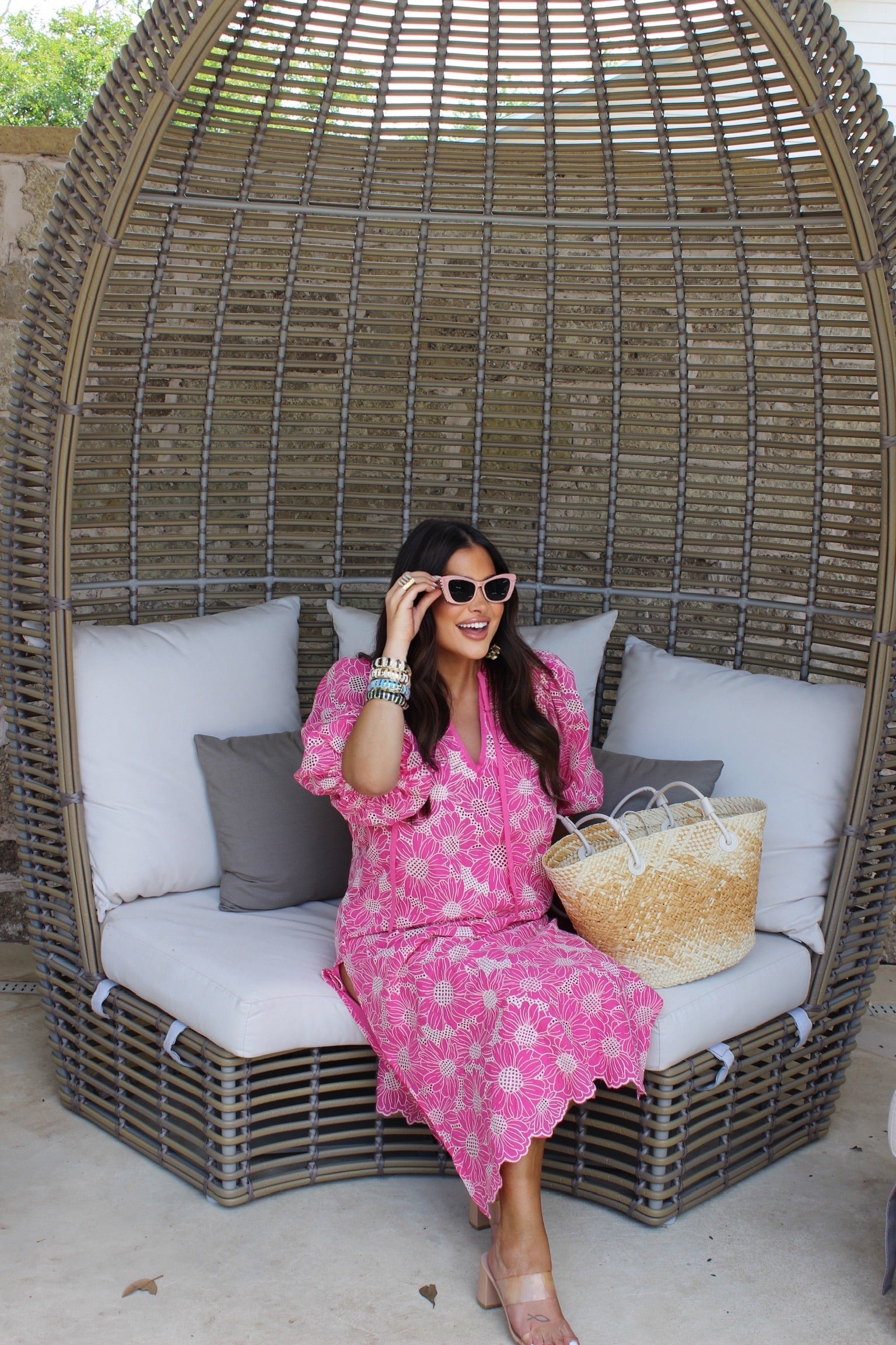 Looking so good has never been so easy with our Pamela Dress in this beautiful lace detailing! She features a v neckline, elbow length sleeves with elastic for comfortability, side slits and a maxi silhouette and length. Dress it up with heels for a date night out or dress it down with sandals to go shopping!