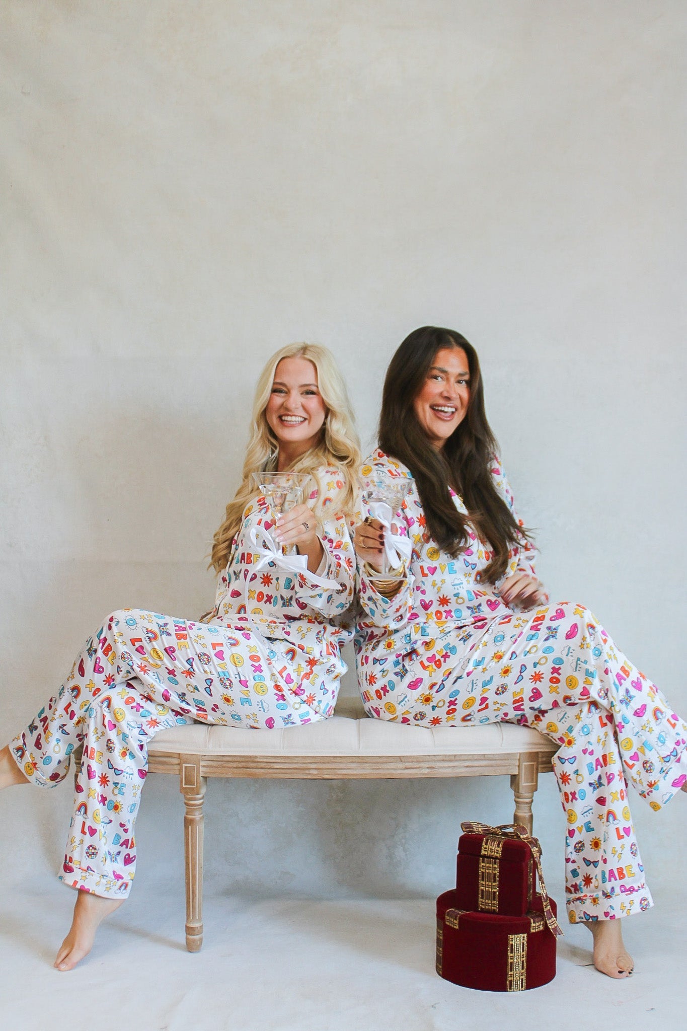 Who knew bedtime could look this cute?! This set includes cozy tie waist pants and a super soft bejeweled button down top. Slip into our Penelope Pajama Set after a long day, because you've earned it! Also makes the perfect gift for your girl gang!