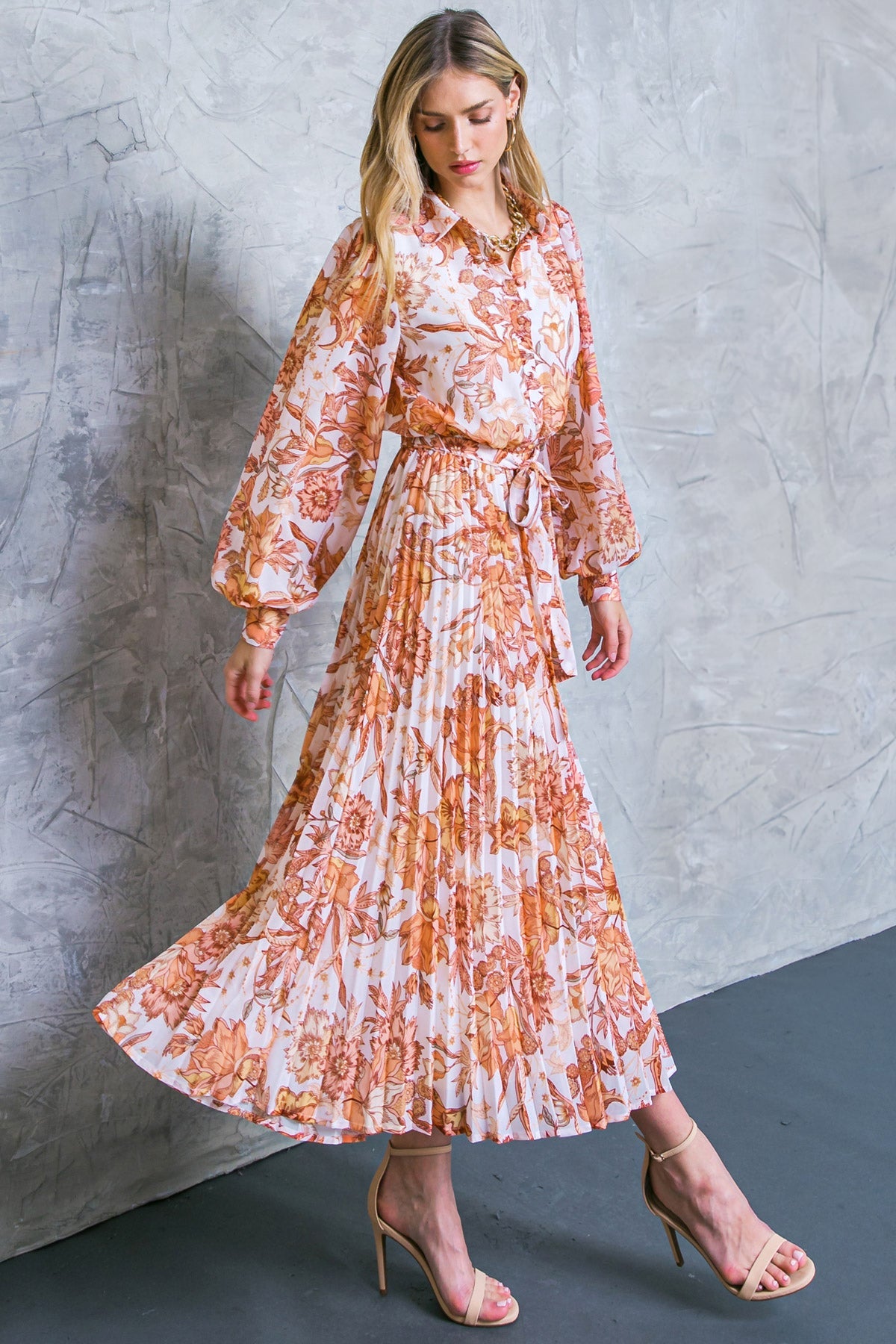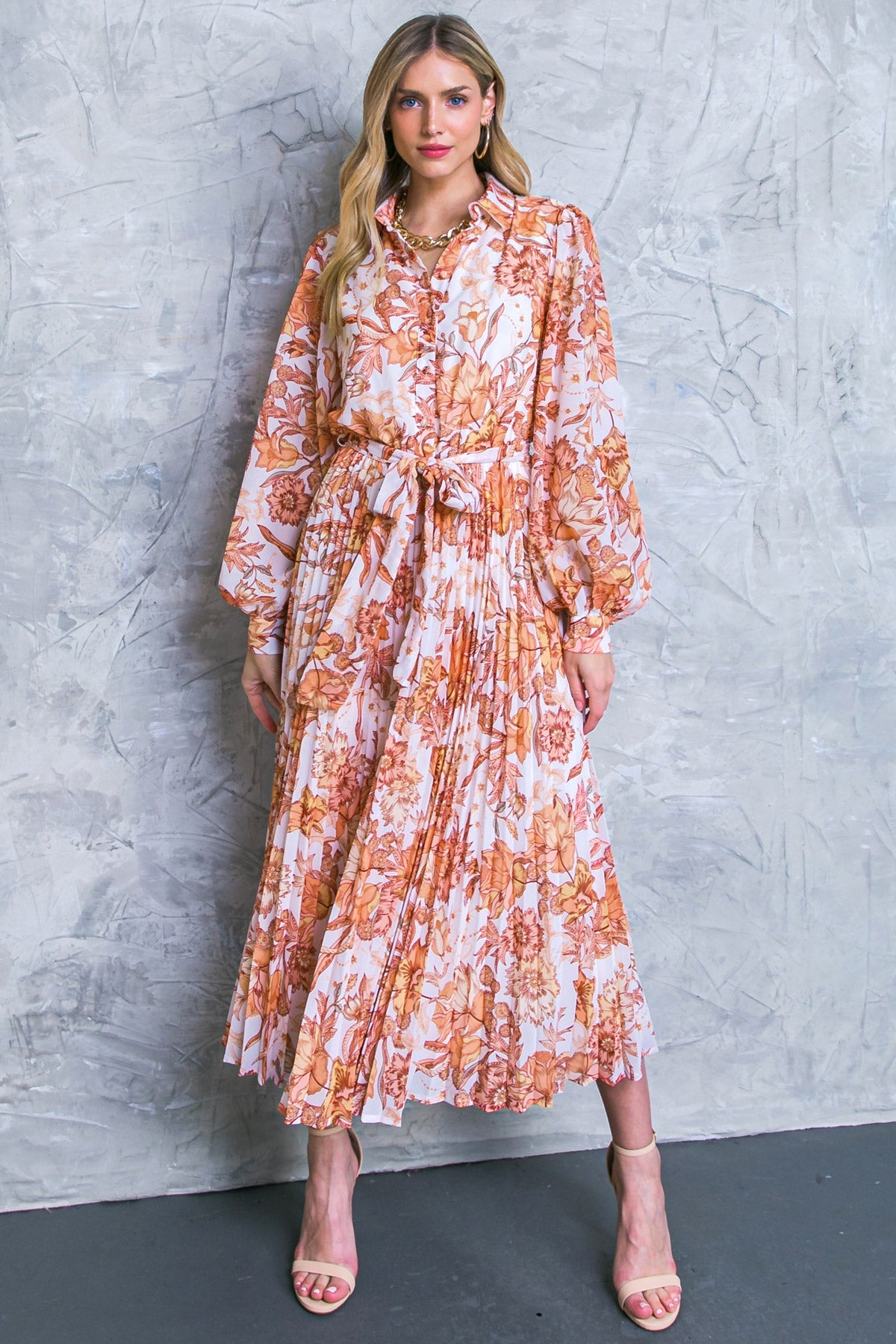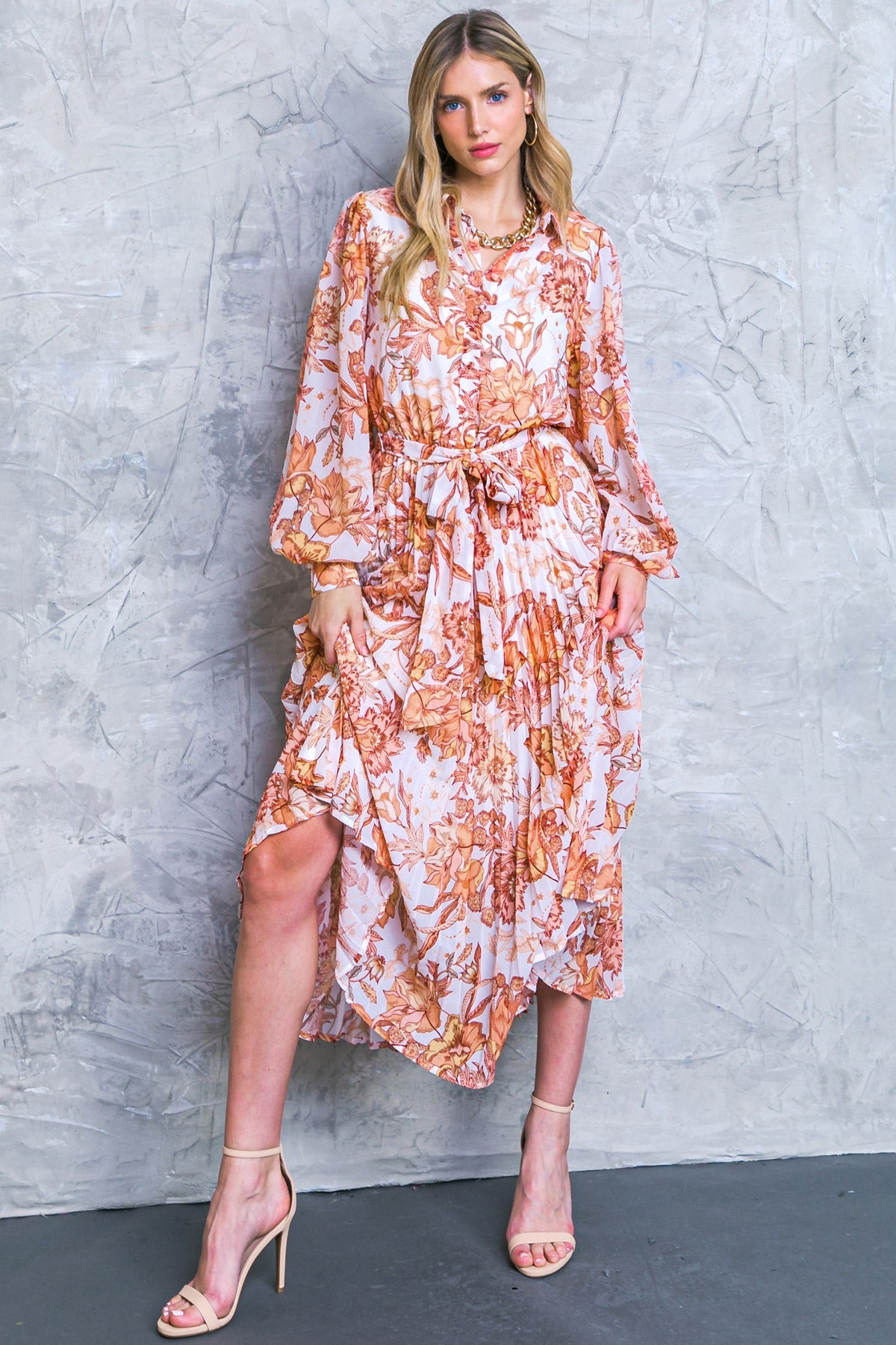 Look effortlessly polished in this Social Sensation Woven Midi Dress. This stylish piece features a shirt collar, button down, long sleeve with cuff, and an elasticized waist with self sash tie for a flattering fit. It's finished with a pleated skirt for feminine flair. Enjoy the perfect look for any occasion.