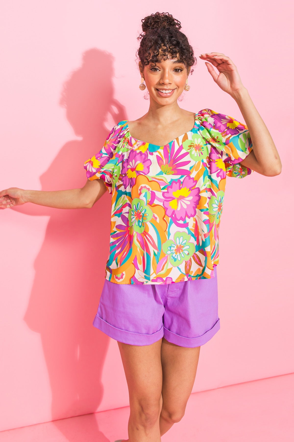 The Southern Sweetie Woven Top offers a classic look with a modern twist. An all-over print creates a unique style, while a sweetheart neckline, short puff sleeve, and relaxed body provide total comfort. Wear this top and make an effortless statement.