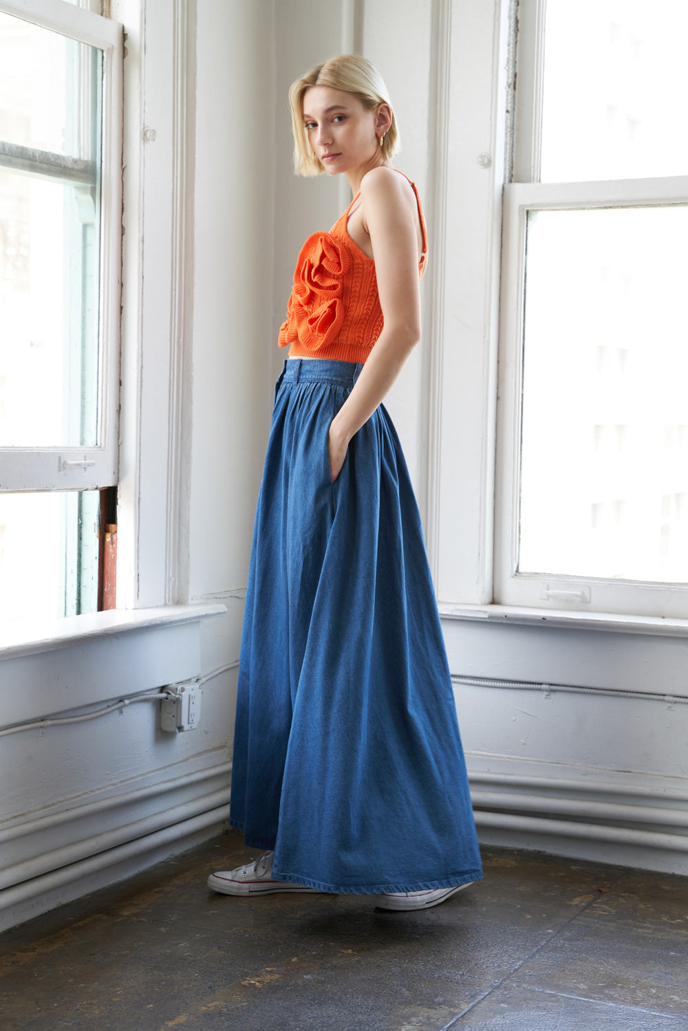A sweater knit tank top with adjustable straps