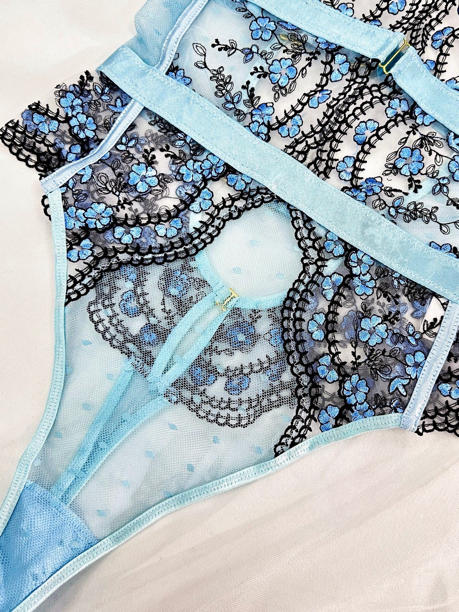 Tender Blossom Halter bodysuit includes one piece body suit. Feel ultra sexy wearing this matching set and it will guarantee all eyes are on you.