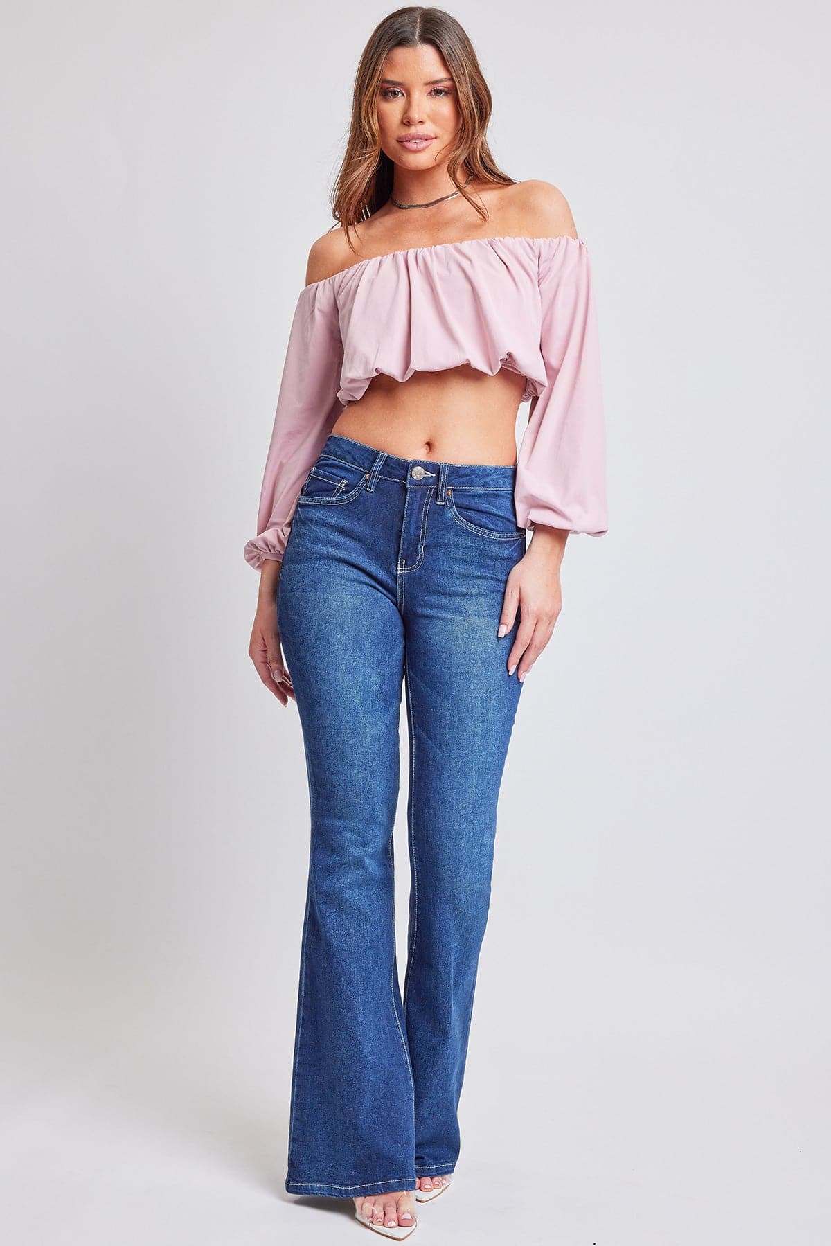 Retro is back and we’re all about it! Bring some flirt and flair to any look with our Women's Essential High Rise Flare Jean-Long Inseam. This fit features 2 additional inches in length for all of our tall babes to rock! These flares are made from smooth and soft denim so it fits and flatters your every curve. Pair them with sneakers for a casual vibe, or dress up with strappy heels or booties!